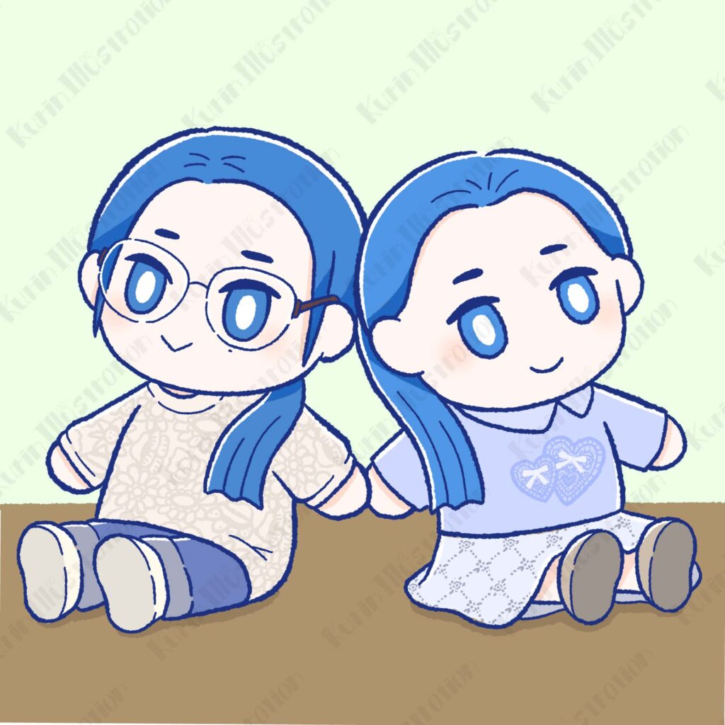 ぬいぐるみ風のイラストは、髪型や服装など細かな特徴を事前にヒアリングし、実際の写真を元に作画しました。