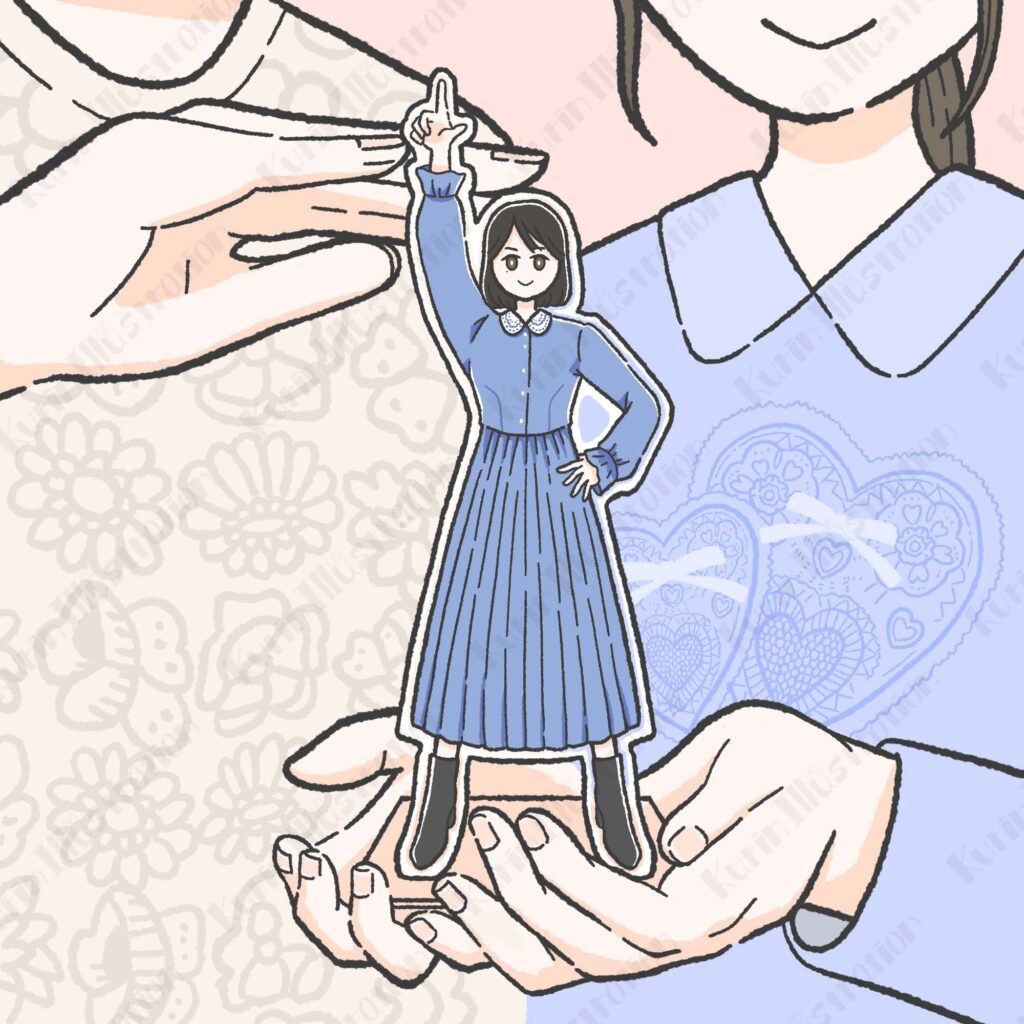 アクスタ風のイラストは、ご依頼主様と私(くりん)が以前から応援している中川翔子さんのグッズをモチーフにしたもの。