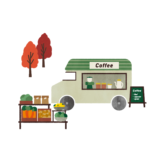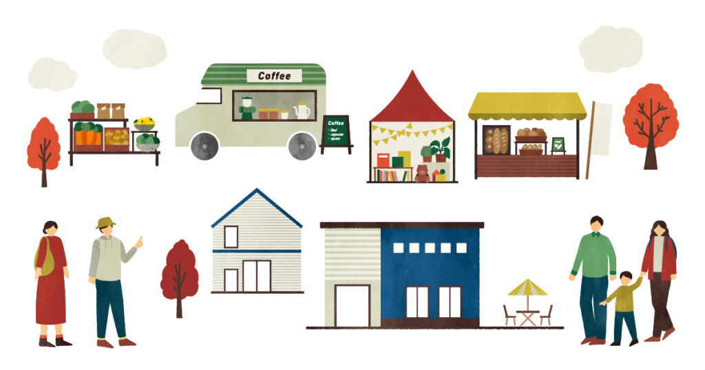 工務店さんが主催するイベントなので、マルシェをイメージしたイラストだけでなく