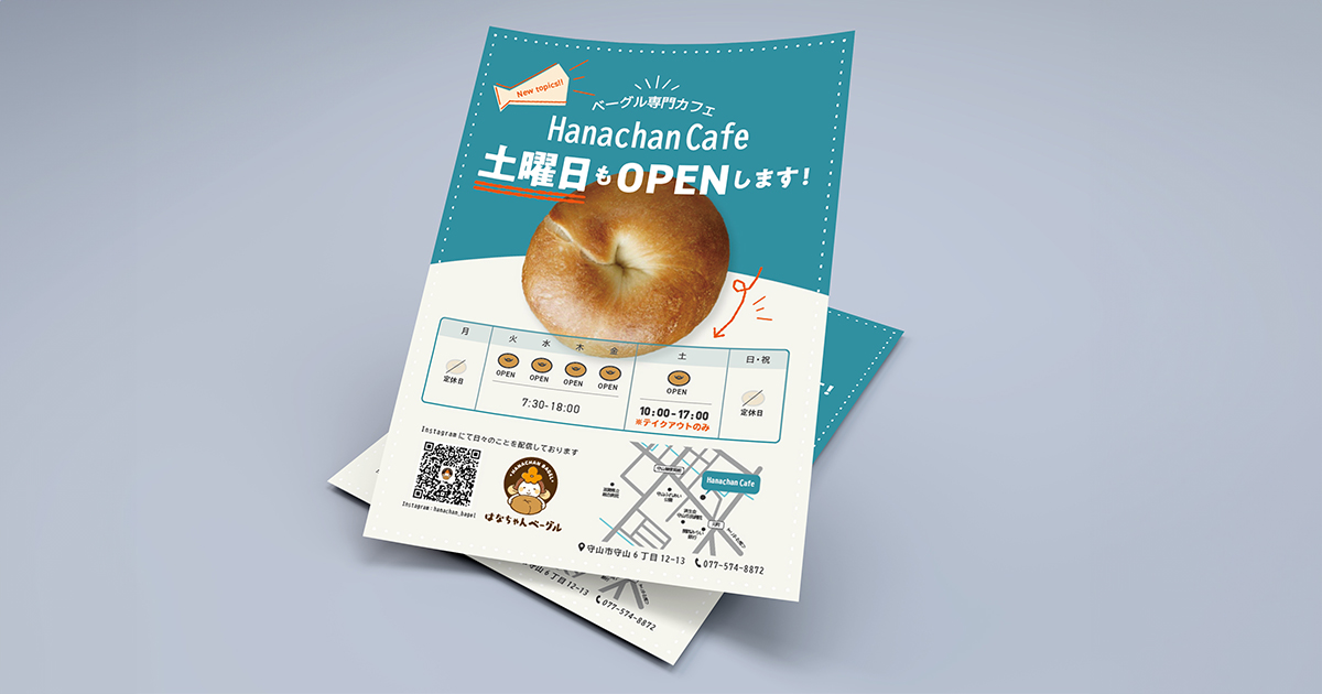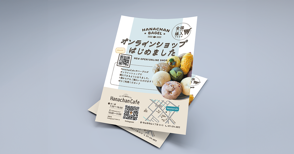 【案内チラシデザイン】はなちゃんベーグル様