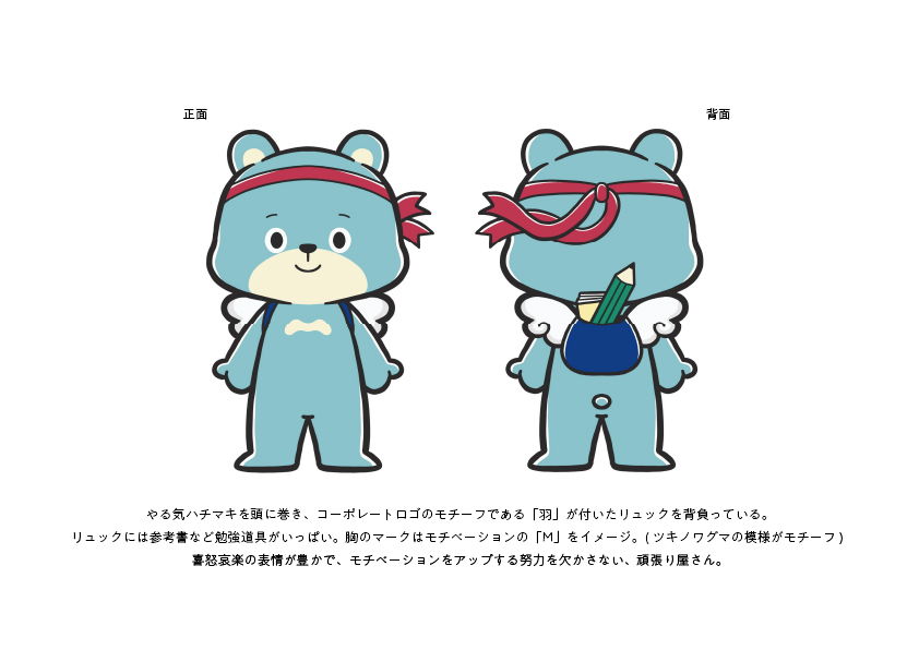 塾の経営理念や、ロゴのイメージを組み合わせた、オリジナルキャラクターをいくつか提案いたしました。
