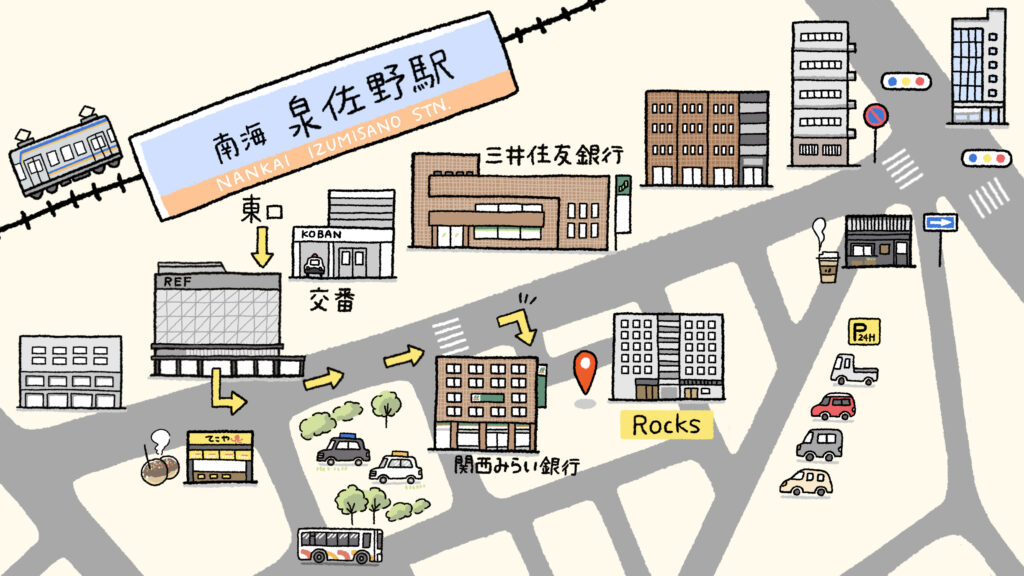 大阪府泉佐野市のコワーキングスペースRocksさまのYouTube動画にて使用するイラストを制作しました。