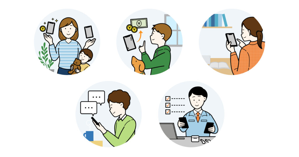 スマートフォンなどを個人で売り買いできるフリマアプリの、ロゴデザイン・イラスト・バナーを制作しました。