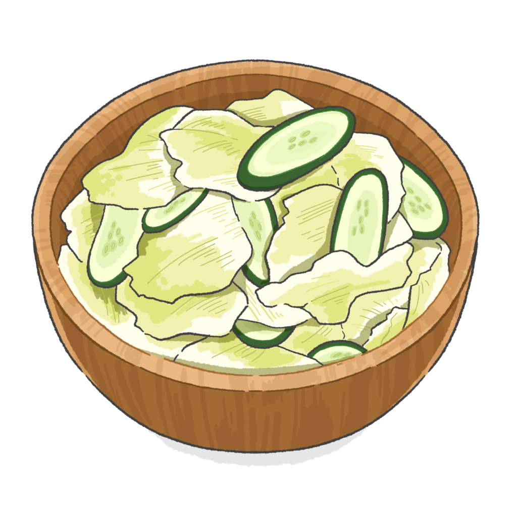単調にならないように、器のイラストもそれぞれ変えているのもポイントです。