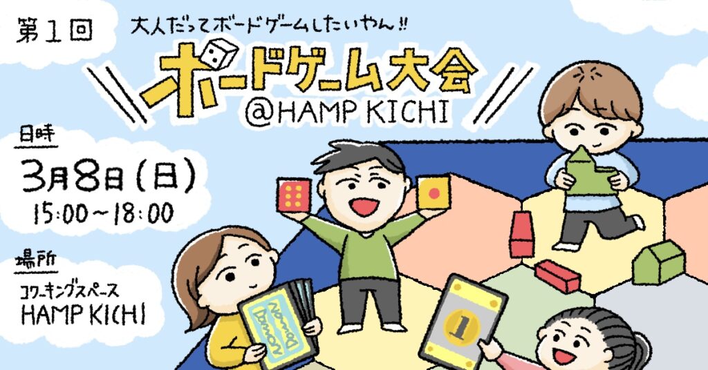 ボードゲームのイベントということで、盤面でわいわいと遊ぶ様子を描きました。