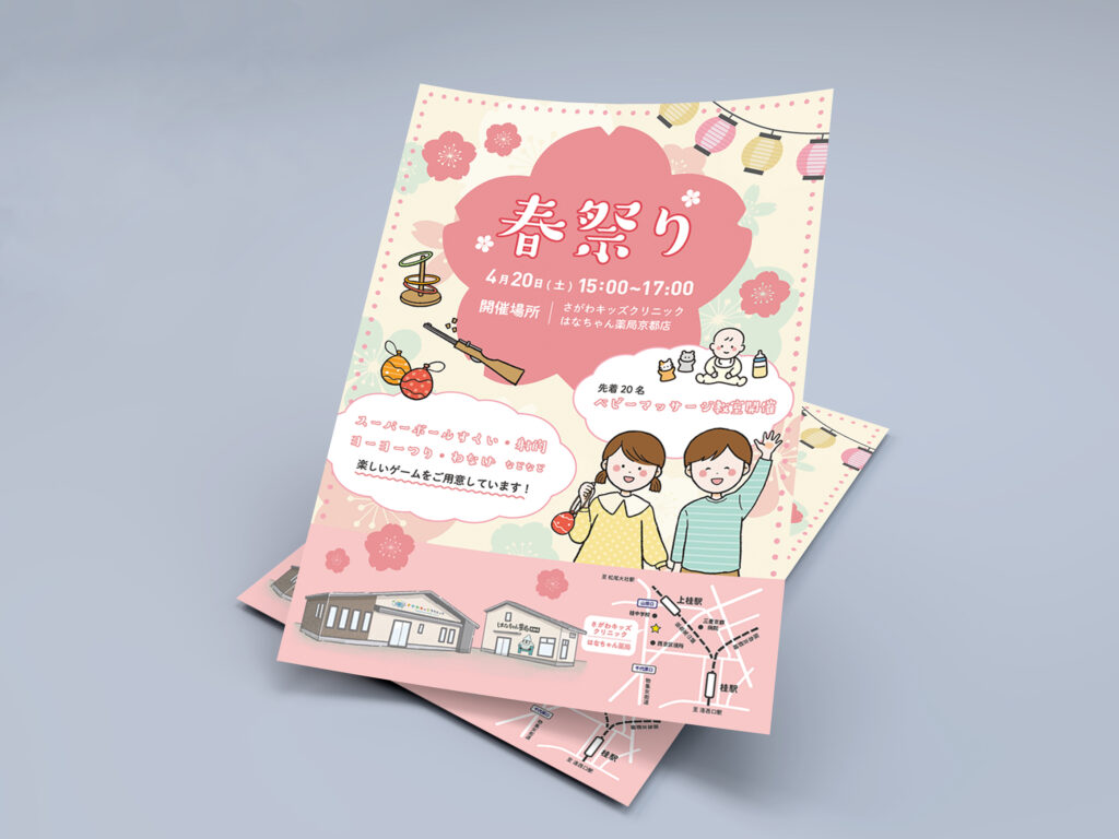 以前に制作させていただいた夏祭りのデザインを元に春っぽく変更してほしい、とのご要望でしたので