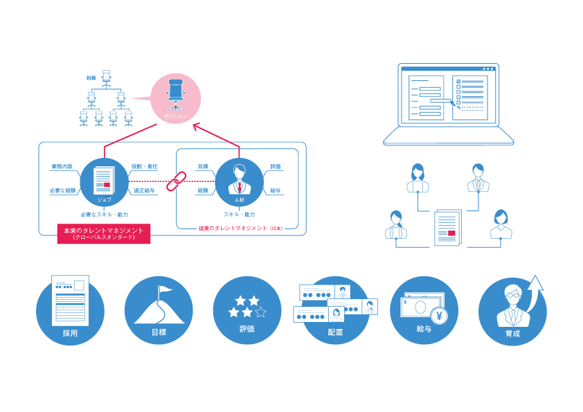 人材マネジメントクラウド「Job-Us」サービスサイト用イラストを制作しました。