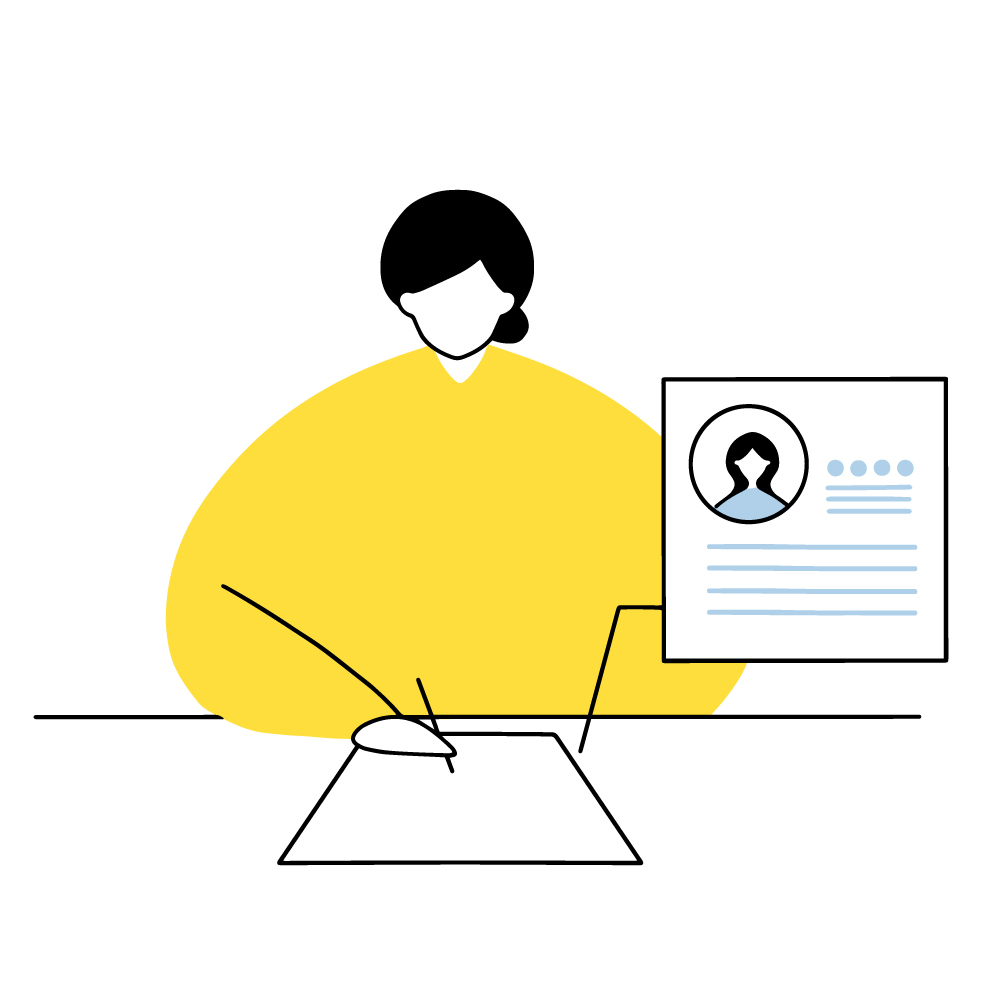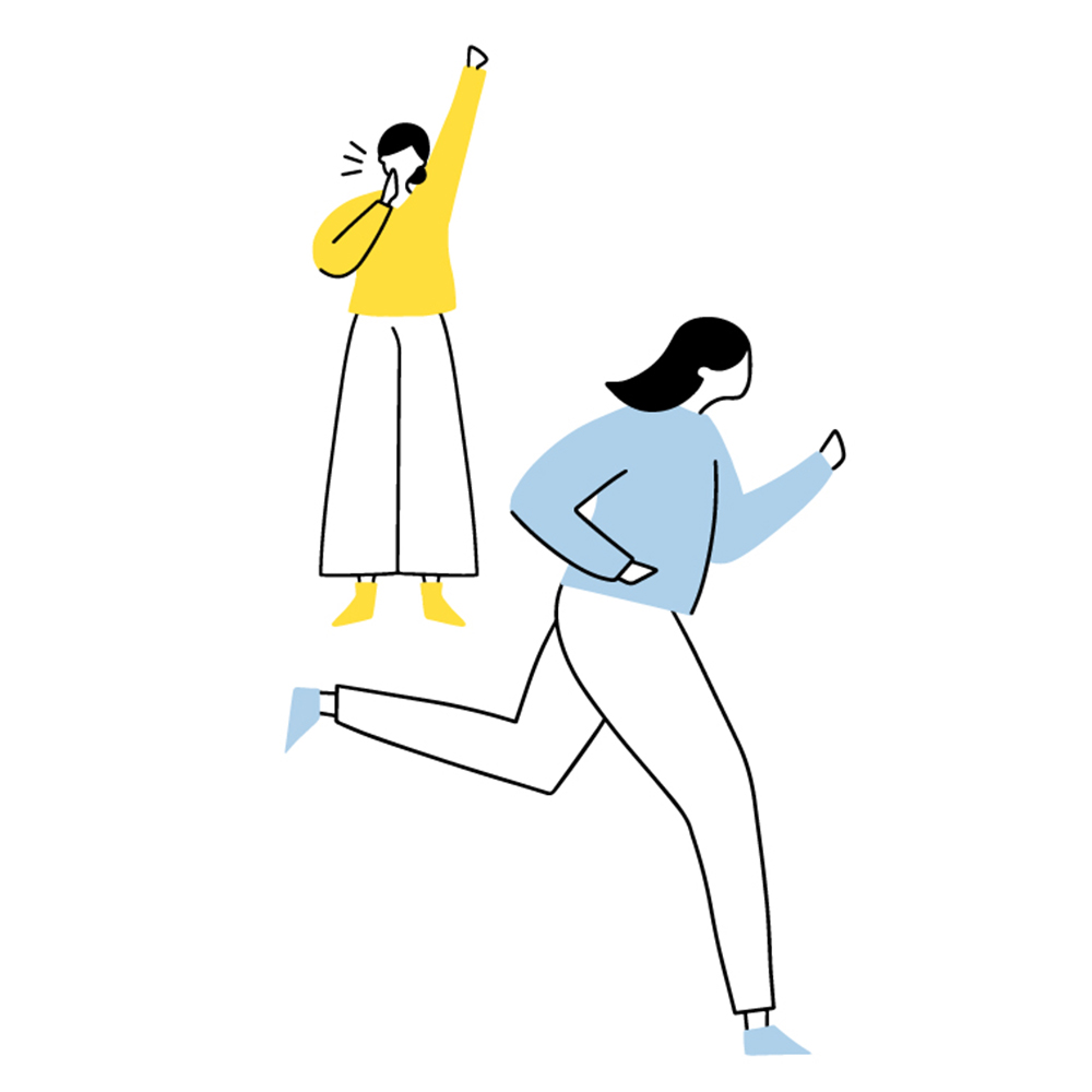 顔の表情がなく、スッキリした、スタイリッシュなイラストに仕上げています。