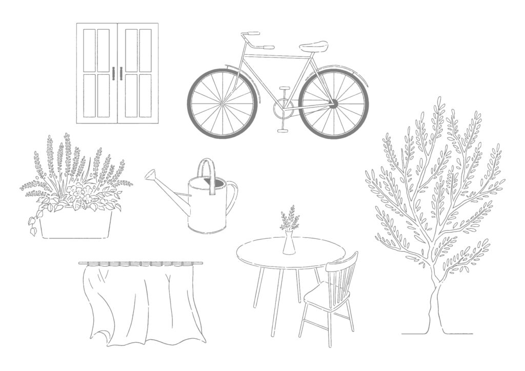 建築関係のサイトに使用されるので、家のモチーフやガーデニングのモチーフを描いています。