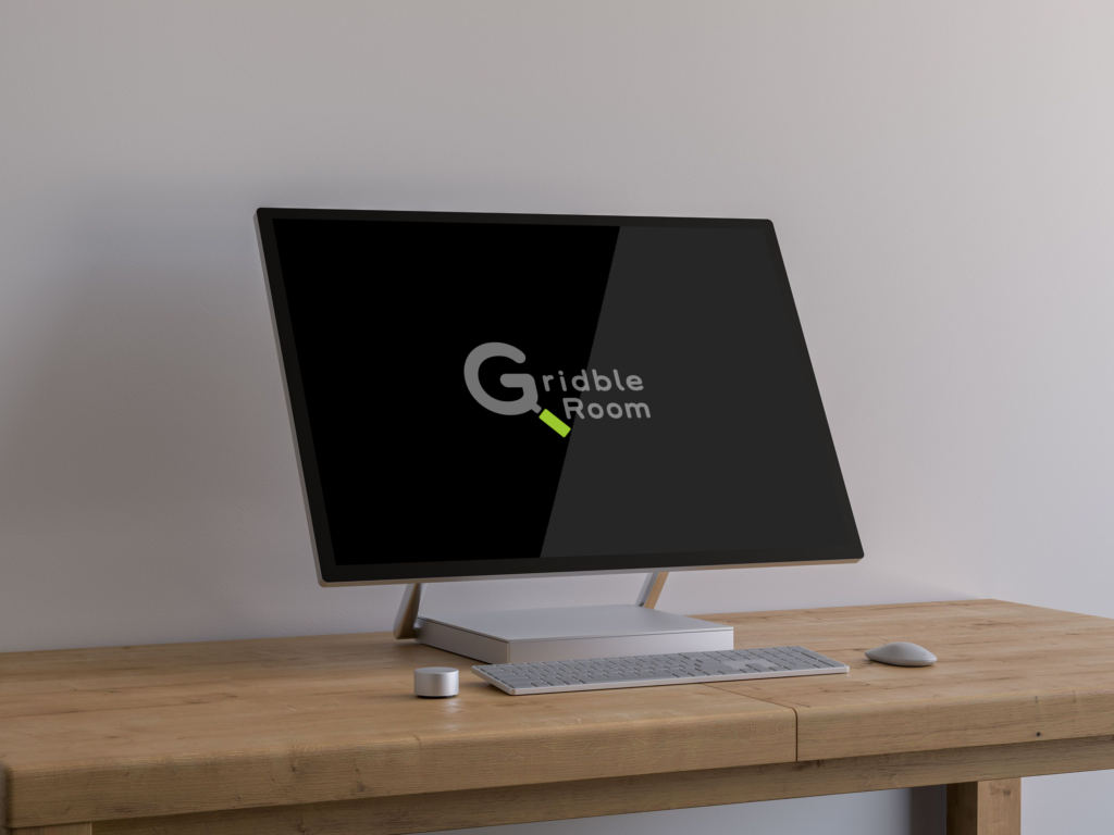 GridbleRoomの頭文字「G」をルーペに見立て研究室のようなイメージにしました。