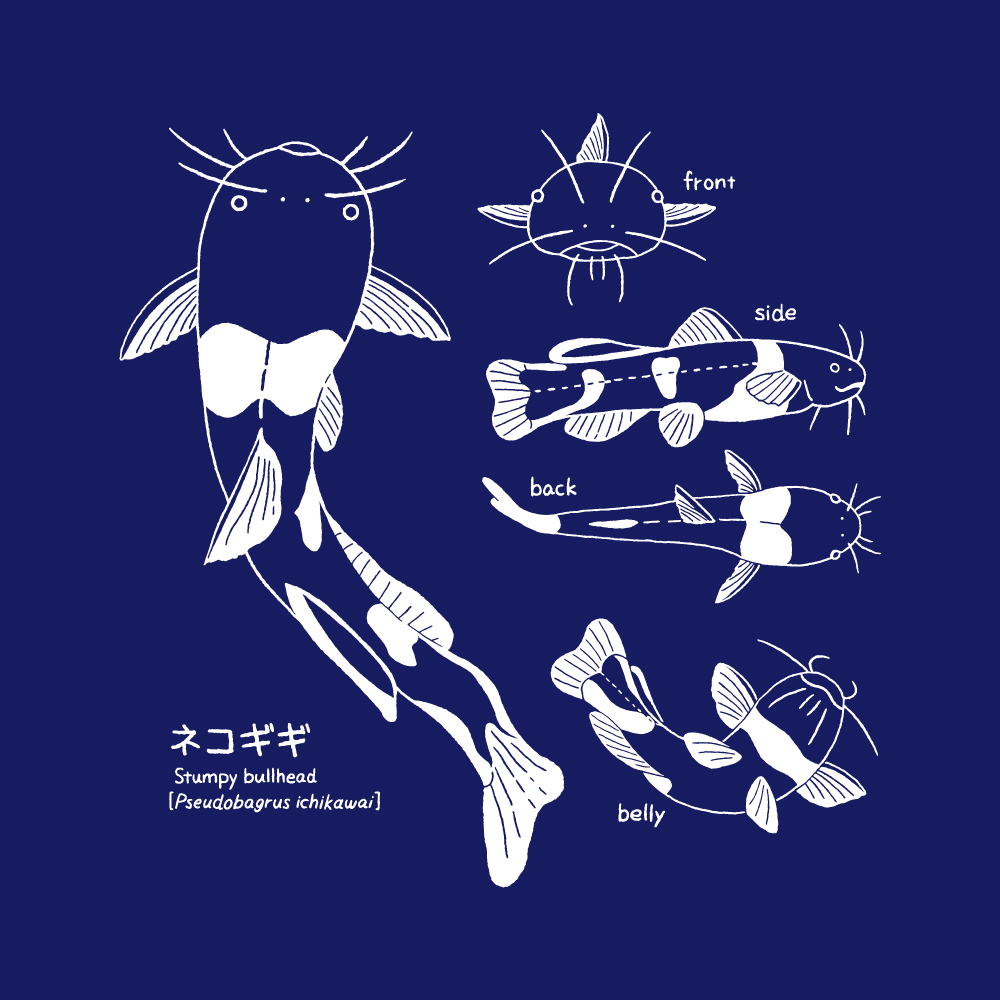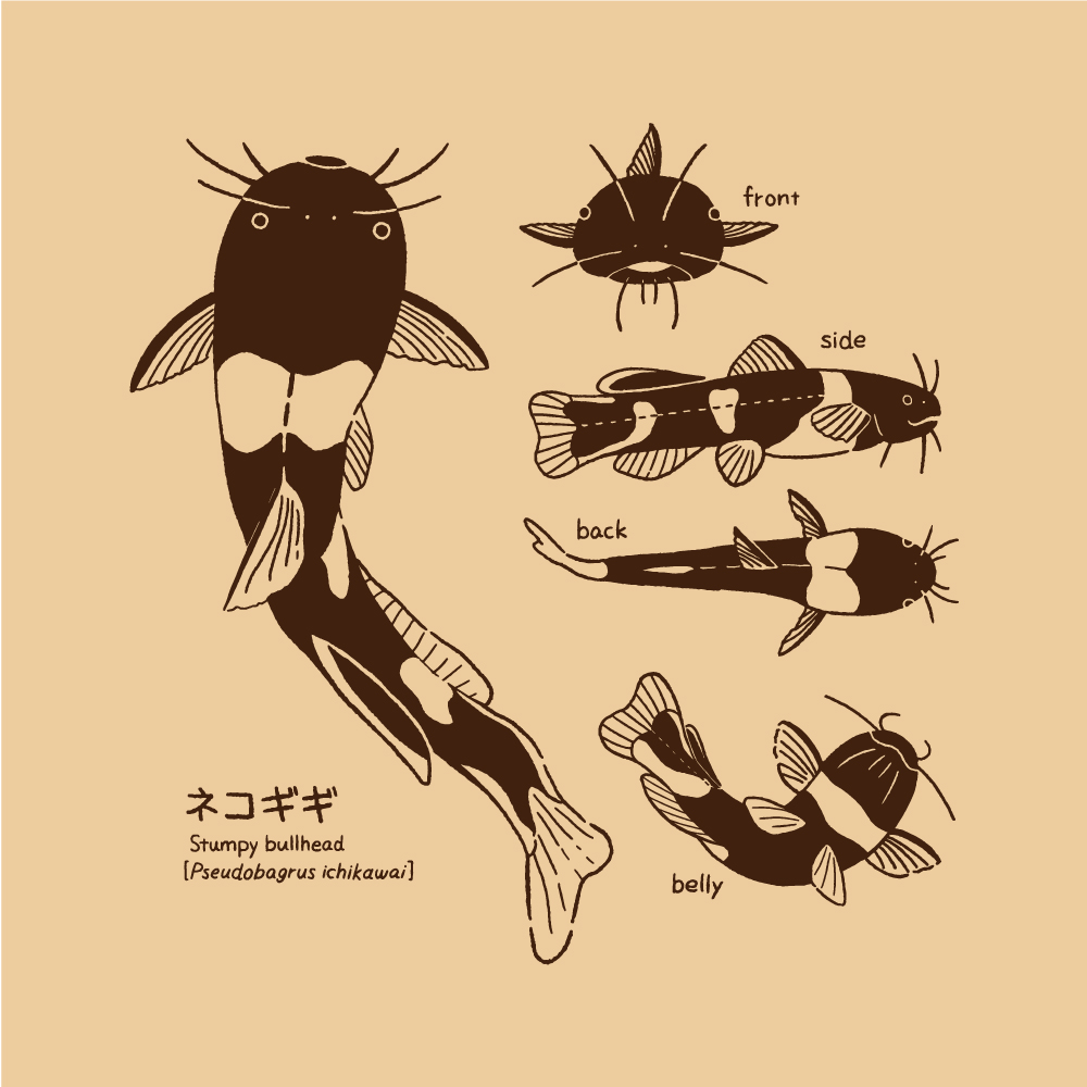 大台町を流れる清流「宮川」に生息する天然記念物「ネコギギ」(ナマズの仲間)をモチーフに描きました。