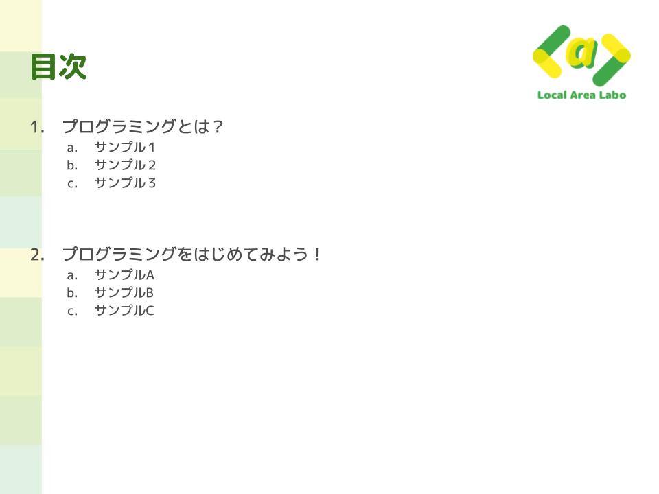 プログラミング教室のスライドショーで使用する、スライドシートのデザインと、イラストを制作しました。