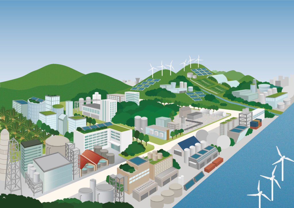イラストは、「今よりも環境に配慮された10年後の街」がモチーフになっています。