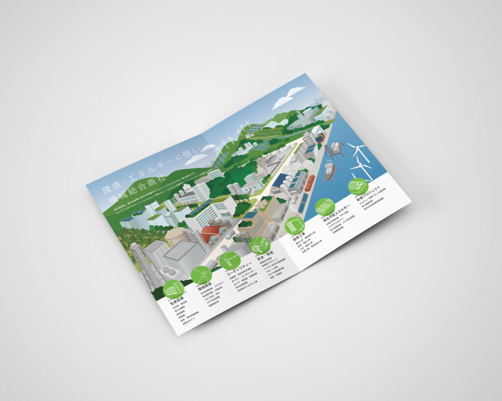 東京産業さま二つ折りパンフレット・イラスト